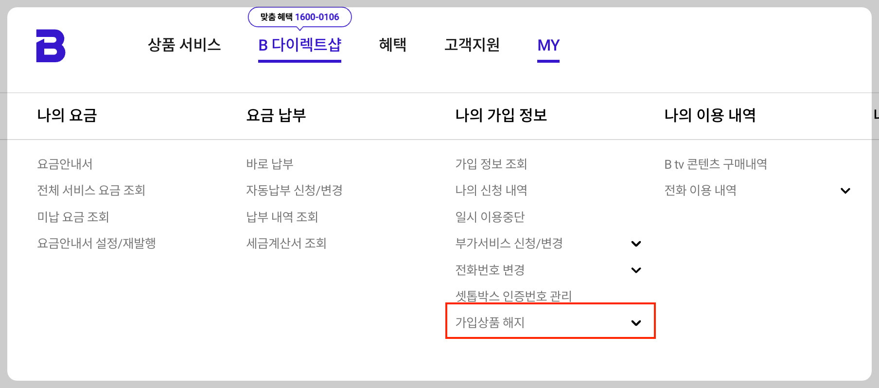그런 경우에는에는 홈페이지에서 직접 해지하는 것을 추천드리는데, 방법은 더 간단한 편입니다.