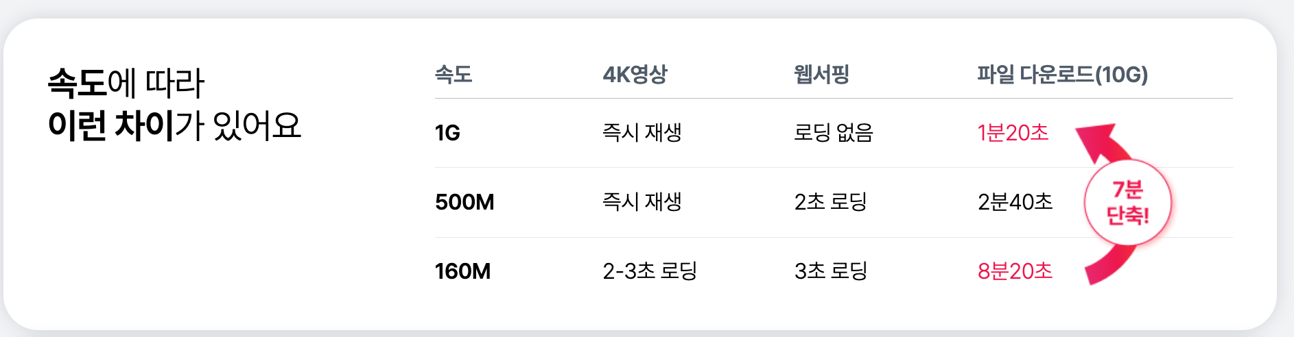 | 상품명 | 최대 속도 | 월 요금 |