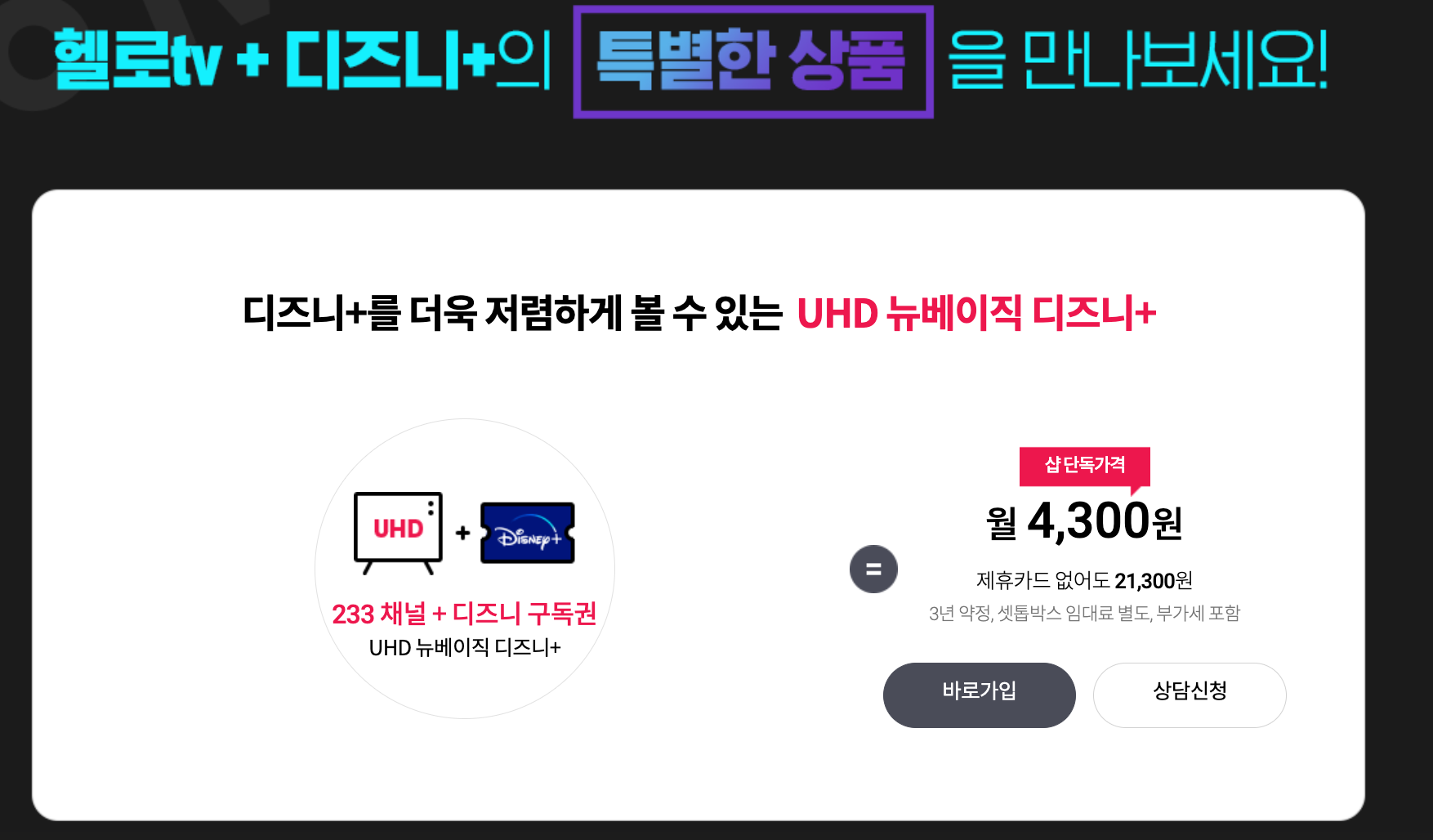 헬로비전은 인터넷과 TV를 결합하면 더욱 저렴하게 사용할 수 있는데요.