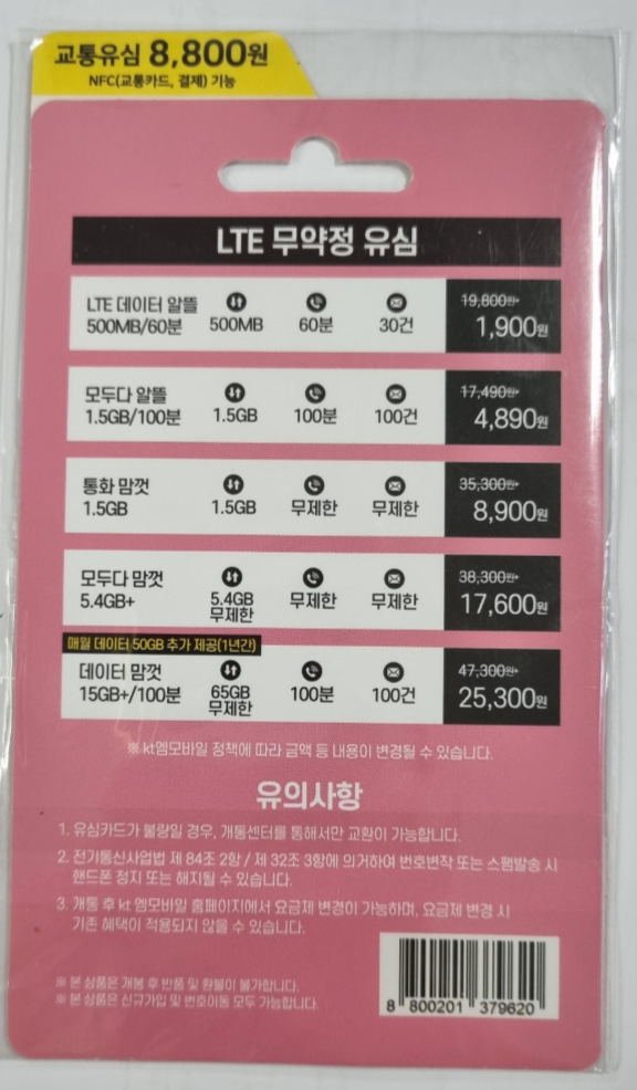 - NFC 유심: 8,800원